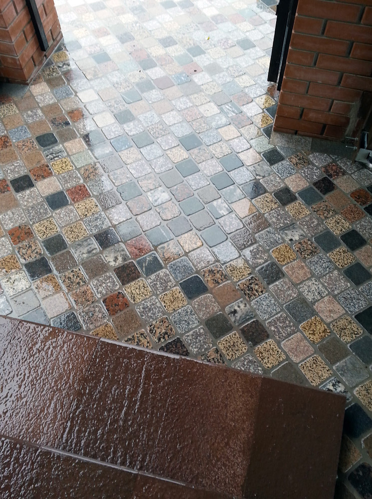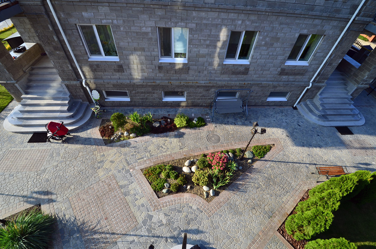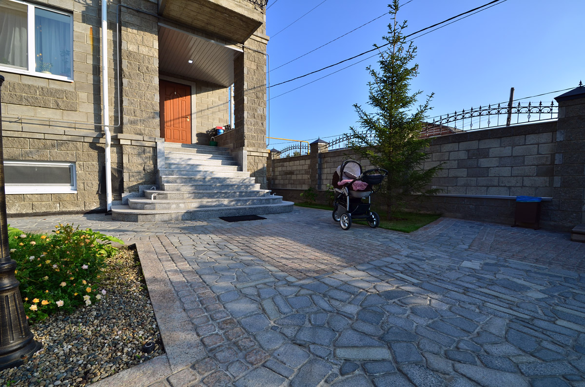 Мощение въездной площадки, брусчатка (цветной микс)
