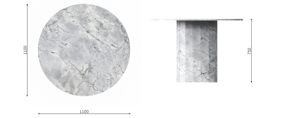 Данную модель стола возможно изготовить из любого вида мрамора, по заказу. Мрамор – это природный материал, который может иметь такие особенности, как прожилки, небольшие неровности поверхности, различные цвета и кристаллизации. Каждое изделие будет уникальным и неповторимым. Мрамор для данной модели обрабатывается водоотталкивающими средствами, которые обеспечивают защиту поверхности, улучшая его водонепроницаемость. Эта обработка не исключает уязвимость мрамора к воздействию кислот.