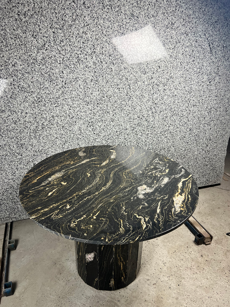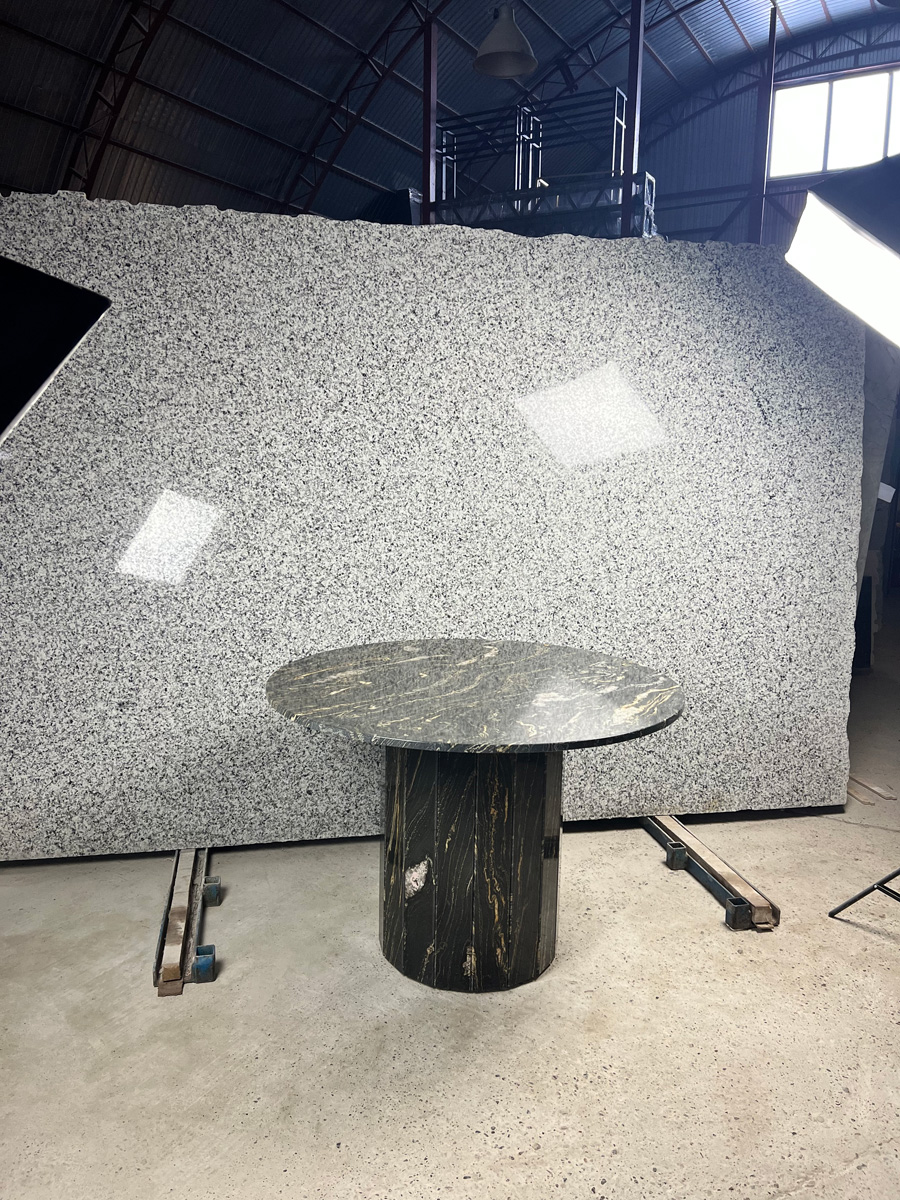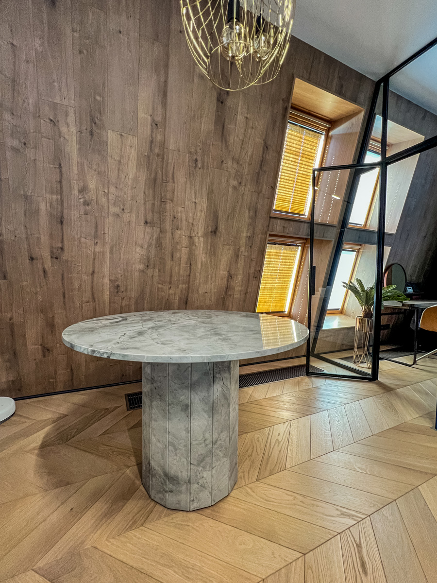 Его дерзкий, архитектурный дизайн заряжает энергией и амбициями. Натуральный камень дарит ощущение роскоши и связи с природой посреди городской суеты. Это стол для тех, кто ценит не просто вещи, а историю, характер и эмоции, которые они дарят.